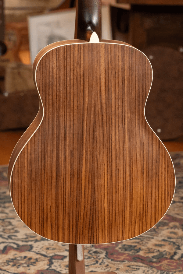 Acoustic guitars produce sound through vibration. The top moves the most, but the back and sides contribute resonance and tonal complexity. Solid wood moves more freely than laminate because it isn’t restricted by glue layers and opposing grain directions. That increased movement generally means richer overtones and greater tonal depth.