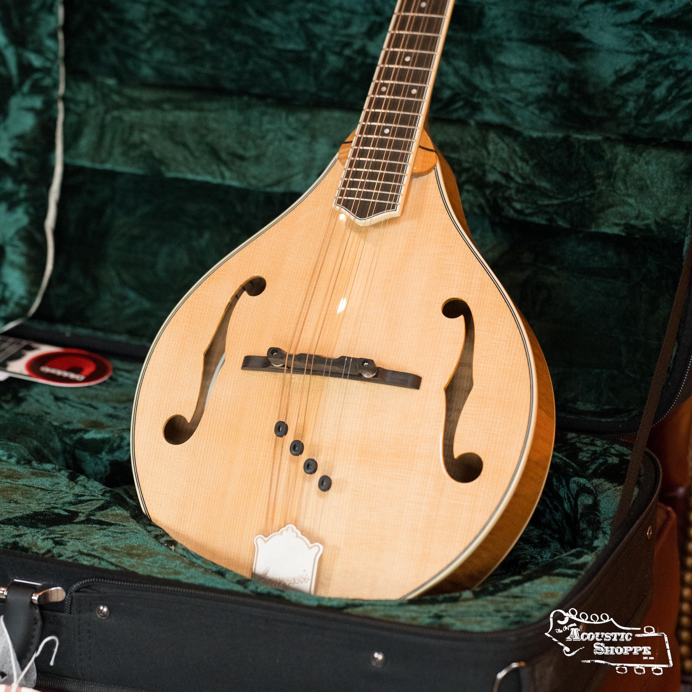 Bourgeois Guitars had not manufactured mandolins previously, with the instruments discussed representing the beginning of a new product line for the company. These new mandolins feature thermally cured or "aged" maple for the back, sides, and neck, as well as the tops. They also incorporate Bosnian maple backs, Adirondack spruce tops, and upgraded hardware like Bill James custom tailpieces and Golden Age tuners. This new endeavor aims to provide Bourgeois quality at a more affordable price point, with initial prototypes featuring an F-style design.