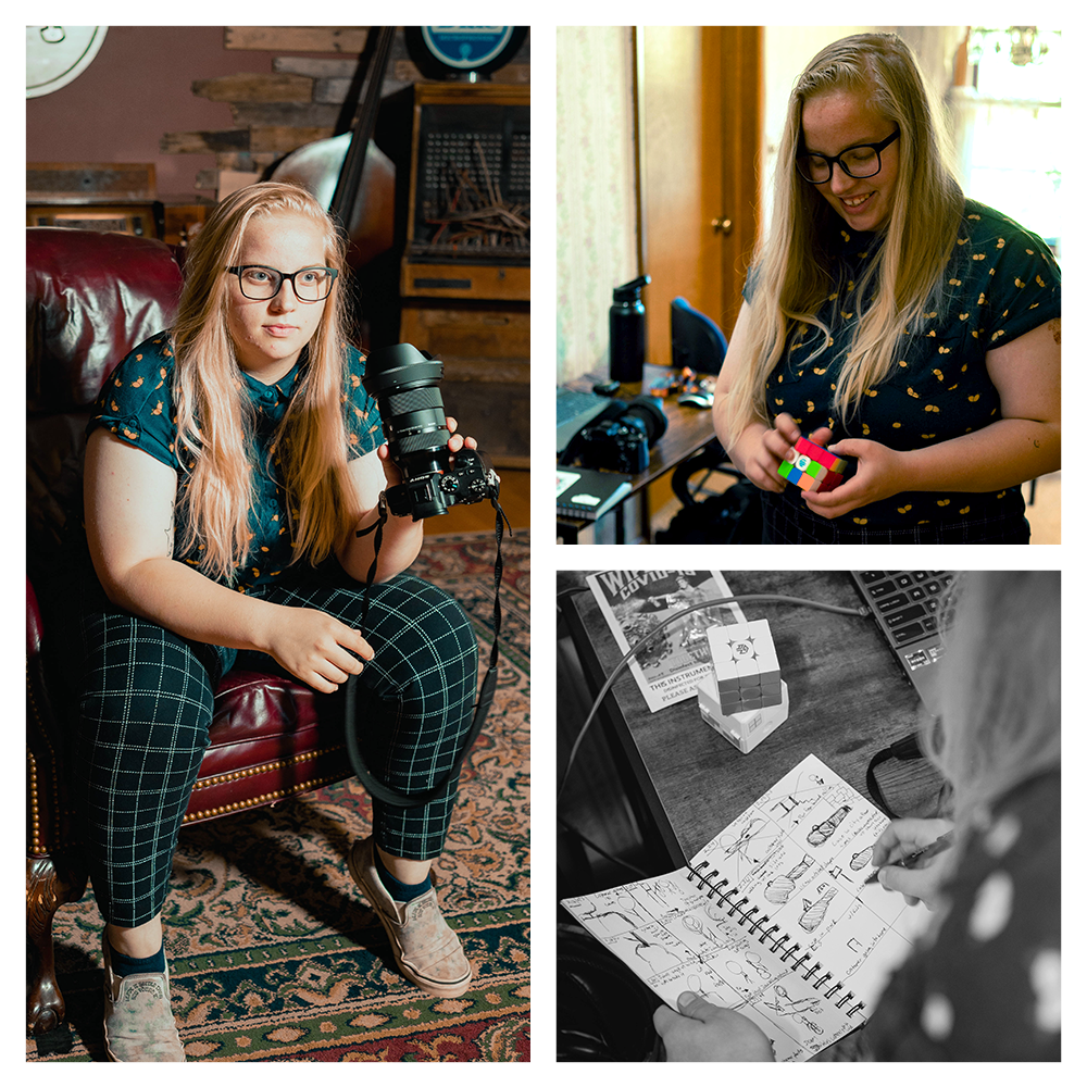 Speedy fingers extraordinaire, Hinkley is a video and photo shining star who solves Rubik's cubes competitively. You can often spot Hinkley in downtown Springfield taking street photography or reading. She is the pre production planner behind all of the media teams video ideas and is always up for new creative challenges.