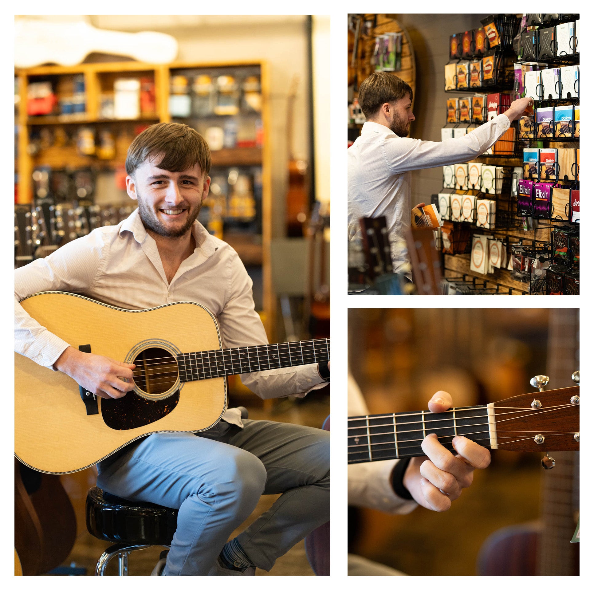 The pride of Oklahoma, Jonas is a fun-loving, guitar enthusiast. He has loved trying a variety of brands in our shoppe but is a true Martin & Co. fan to the core. His first instrument was mandolin actually when he was very young. He moved to guitar later in life when he got much more interested in playing.